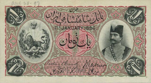 این اسکناسها با ارقام ۱، ۲، ۵، ۱۰، ۲۰، ۵۰ و ۱۰۰ تومانی و با تصویر ناصرالدین شاه منتشر شد.